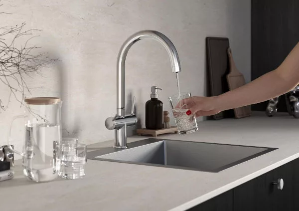 Ta kuchnia to wnętrze urządzone w nowoczesnym, minimalistycznym stylu, z dbałością o każdy detal. W wygodnej strefie zlewozmywaka znajdziemy baterię Fiesta Bright Gold. Dzięki oryginalnemu kolorowi wykończenia powierzchni, którym jest jasne złoto, armatura pasuje do nowoczesnych, ocieplonych drewnem i pastelowymi barwami kuchennych aranżacji. O wygodę użytkowania dbają zaś obrotowa wylewka i funkcjonalny uchwyt sterowania wodą.